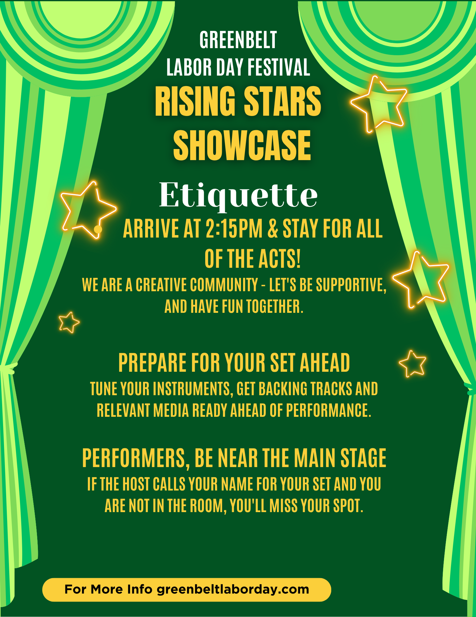 - If you have any questions about the Showcase, please send an email to greenbeltlaborday@gmail.com